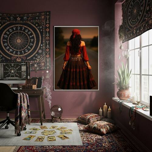 Quadro Decorativo Cigana Na Estrada 70x50cm Mold Preta