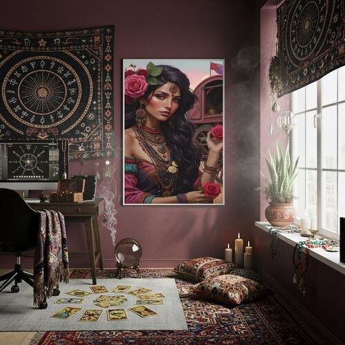 Quadro Decorativo Cigana Rosa 70x50cm Mold Preta