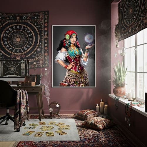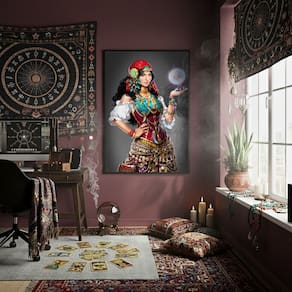 Quadro Decorativo Cigana Vidente - 70x50cm - Cor: Moldura Branca