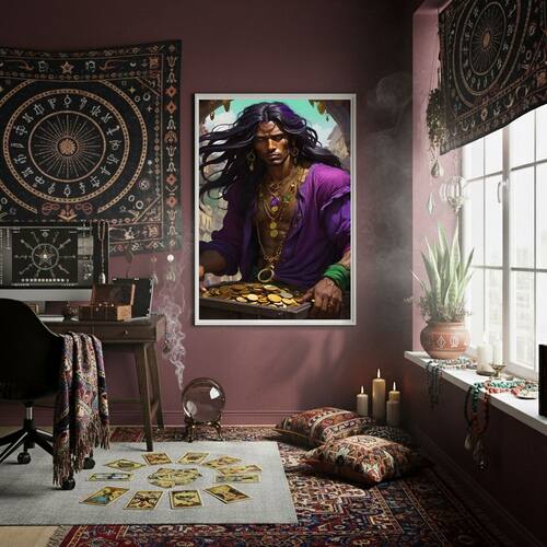 Quadro Decorativo Cigano Vladimir Pote Ouro - 70x50cm - Cor: Moldura Preta