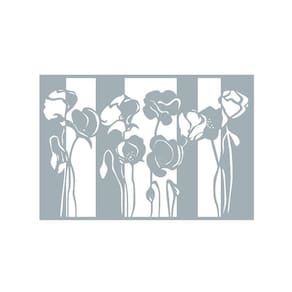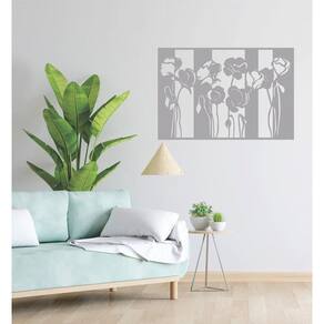 Quadro Decorativo Cinza Branco Mdf Flores 40X20Cm