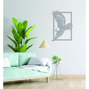 Quadro Decorativo Cinza Mdf Aguia Rasante 40X20Cm