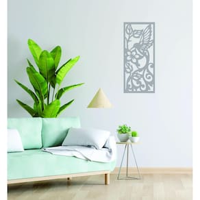 Quadro Decorativo Cinza Mdf Beija-Flor Tribal 40X20Cm