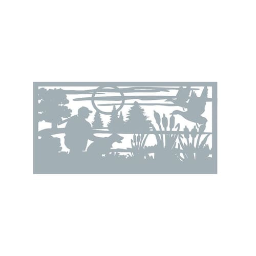 Quadro Decorativo Cinza Mdf Caçador E Cachorro 40X20Cm