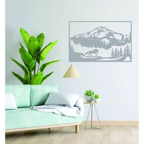 Quadro Decorativo Cinza Mdf Cavalo Livre Montanhas 40X20Cm