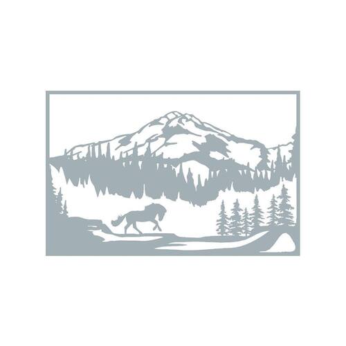 Quadro Decorativo Cinza Mdf Cavalo Livre Montanhas 40X20Cm