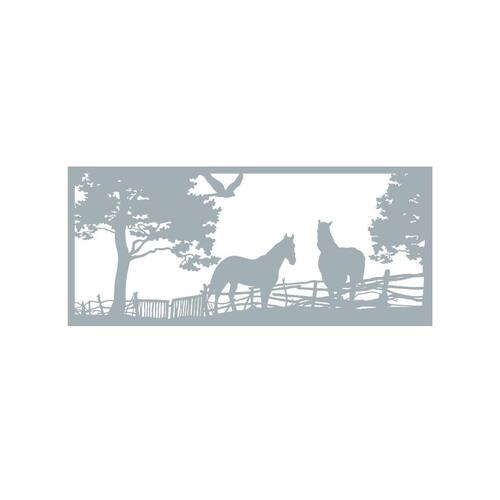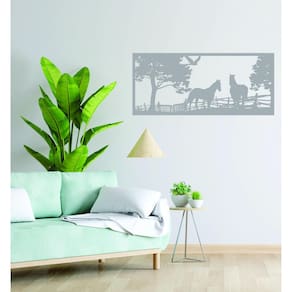 Quadro Decorativo Cinza Mdf Cavalos No Campo 40X20Cm