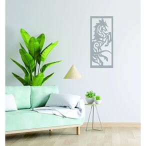 Quadro Decorativo Cinza Mdf Cavalos Tribal 40X20Cm
