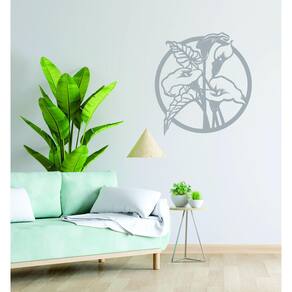 Quadro Decorativo Cinza Mdf Flor Copo De Leite 40X20Cm