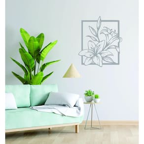 Quadro Decorativo Cinza Mdf Flor Lírios 40X20Cm