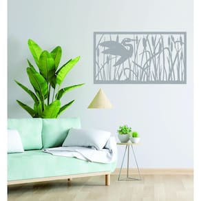 Quadro Decorativo Cinza Mdf Garça Selvagem 40X20Cm