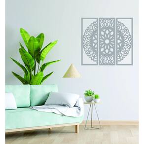 Quadro Decorativo Cinza Mdf Mandala Arabesco 40X20Cm