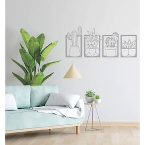 Quadro Decorativo Cinza Mdf Quadri Plantas 40X20Cm