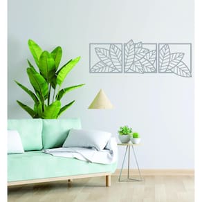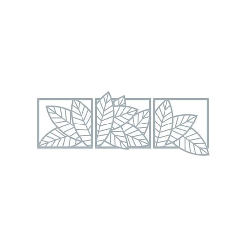 Quadro Decorativo Cinza Mdf Trio Folhas Linear 40X20Cm