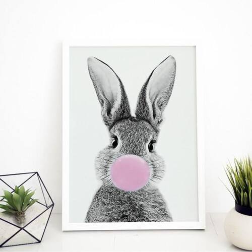 Quadro Decorativo Coelho Chiclete 45X34 C/Vidro - Branca O Quadro Decorativo Coelho Chiclete é perfeito para dar um toque especial na decoração do seu quarto, sala, cozinha, escritório, área gourmet e muito mais. Chega de paredes vazias! Com medidas de 45x34cm A3 , cada peça é produzida com papel fotográfico brilhante de altíssima resolução, proporcionando uma imagem nítida e de qualidade. Além disso, todos os quadros são acompanhados de vidro para proteção da imagem, garantindo durabilidade e conservação. A moldura é feita em madeira branca, conferindo um visual elegante e sofisticado ao quadro. Além disso, os quadros são embalados de forma segura com plástico bolha com camada dupla, de acordo com o tamanho, para garantir que cheguem em perfeito estado. A fixação é simples e prática. Cada quadro já acompanha penduradores, então você só vai precisar de um martelo e um prego para colocá-lo na parede. É a forma mais indicada para garantir que o quadro fique bem posicionado e seguro. A limpeza do quadro é fácil e rápida. Basta utilizar um pano seco ou espanador, como você faz com qualquer móvel da sua casa. Assim, você mantém o quadro sempre bonito e livre de poeira. Garanta agora mesmo o Quadro Decorativo Coelho Chiclete 45X34 C/Vidro - Branca e deixe sua decoração ainda mais encantadora. Produto com de 3 meses. Especificações técnicas: - Título: Quadro Decorativo Coelho Chiclete 45X34 C/Vidro - Branca - Medidas: 45x34cm A3 - Material do papel: Papel fotográfico brilhante de altíssima resolução - Moldura: Madeira branca - Acompanha vidro para proteção da imagem - Embalagem segura com plástico bolha com camada dupla - Fixação com penduradores acompanha martelo e prego - Fácil limpeza com pano seco ou espanador - de 3 meses Não perca a oportunidade de decorar sua casa com estilo e bom gosto. Adquira agora mesmo o Quadro Decorativo Coelho Chiclete 45X34 C/Vidro - Branca e transforme seus ambientes!