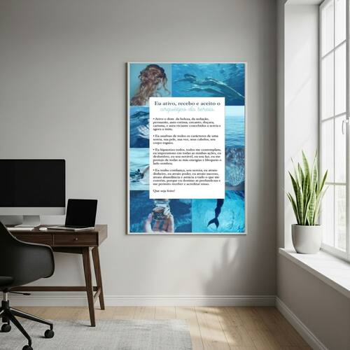 Quadro Decorativo Colagem Arquétipo da Sereia - 70x50cm - Cor: Moldura Preta