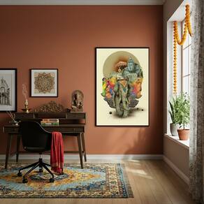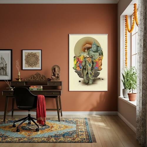 Quadro Decorativo Colagem Artística Índia Próspera - 70x50cm - Cor: Moldura Preta