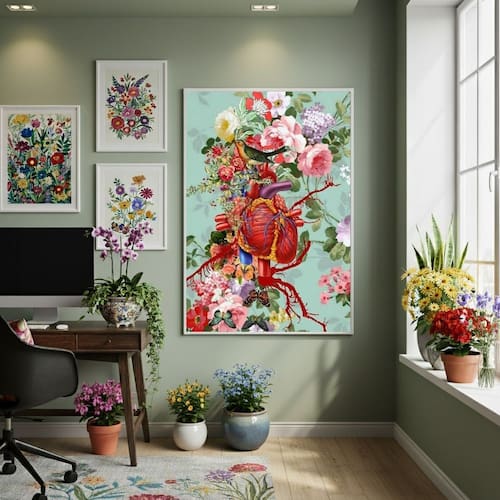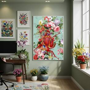 Quadro Decorativo Colagem Corpo Florido 70x50cm Mold Branca