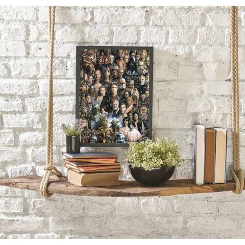 Quadro Decorativo Colagem Personagens Star Wars - Tamanho: A4 (20 x 30) / Acabamento: Película de acetato / Moldura: Madeira preta
