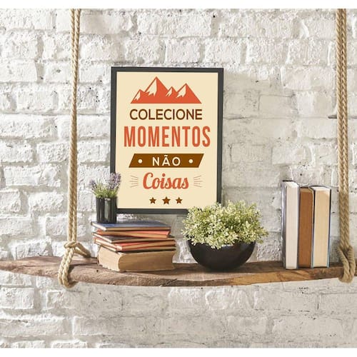 Quadro Decorativo Colecione Momentos, Não Coisas - Tamanho: A4 (20 x 30) / Acabamento: Película de acetato / Moldura: Madeira preta