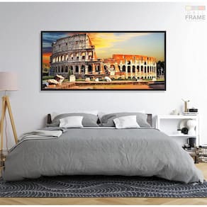 Quadro Decorativo Coliseu Roma Itália Para Sala 130x60 Moldura Preta 2x2