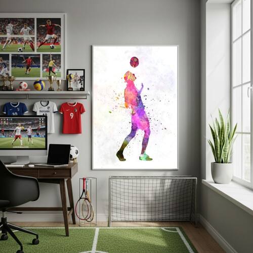 Quadro Decorativo Com A Bola Na Cabeça-70x50cm - Cor: Moldura Branca