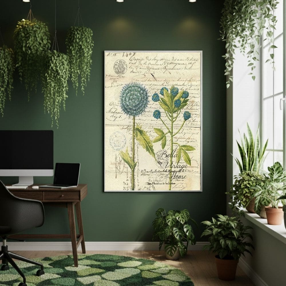 quadro decorativo com moldura branca flor azul 60x60cm decore pronto