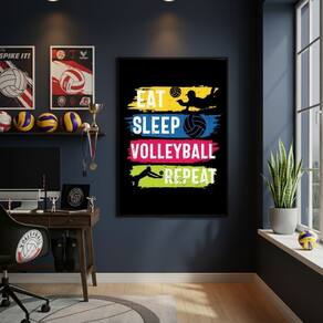 Quadro Decorativo Comer Dormir Vôlei-70x50cm Mold Preta