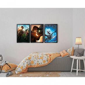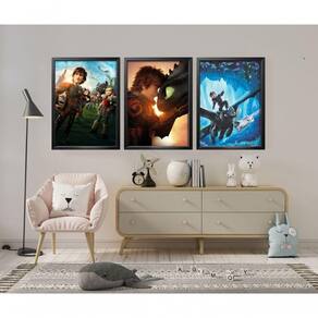 Quadro Decorativo Como Treinar Seu Dragão Com Moldura Preto