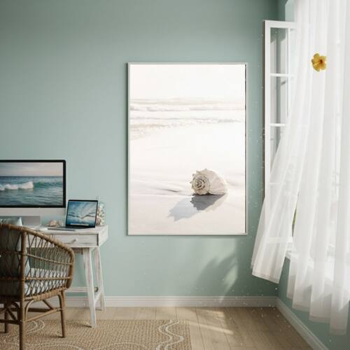 Quadro Decorativo Concha Marinha Caracol-70x50cm - Cor: Moldura Preta