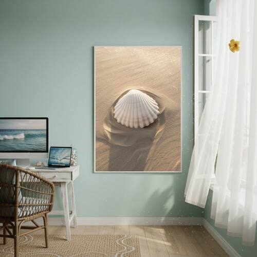 Quadro Decorativo Concha Marinha Na Areia-70x50cm