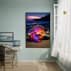 Quadro Decorativo Conchas Brilhantes-70x50cm - Cor: Moldura Preta