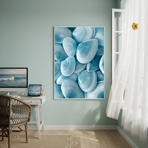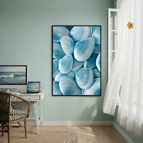 Quadro Decorativo Conchas Marinhas Azuis-70x50cm - Cor: Moldura Preta