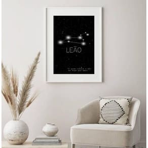 Quadro decorativo constelação signo leão - 60x48cm Moldura: madeira preta Informações do produto tire todas as suas dúvidas no descritivo abaixo: decoração para quarto, sala, cozinha, escritório, área gourmet e muito mais. Chega de paredes vazias medidas - cada peça tem 60x48cm . Material do papel - papel fotográfico brilhante de altíssima resolução acabamento - todos os quadros são acompanhados de vidro para proteção da imagem. - moldura em madeira maciça na cor preta ou branca conforme produto escolhido e pendurador. - paspatur branco com 7cm de largura - os quadros são embalados de forma segura com plástico bolha com camada dupla de acordo com o tamanho dos quadros. - de 3 meses. Meu quadro chegou. Como posso fixá-lo Você precisa apenas de um martelo e um prego, pois os quadros já vão acompanhados de penduradores. Esta é a forma mais indicada. Como posso limpar meu quadro A limpeza é feita como um móvel comum da sua casa. Apenas um pano seco ou espanador são suficientes para tal Marca: Não Informado