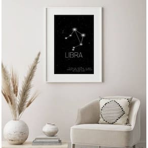 Quadro Decorativo Constelação Signo Libra - 60x48cm - Moldura: Madeira branca