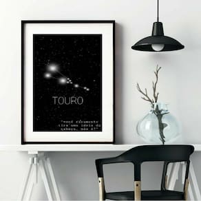 Quadro Decorativo Constelação Signo Touro - 60x48cm - Moldura: Madeira branca