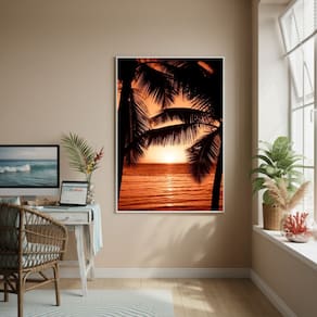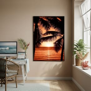 Quadro Decorativo Coqueiros Ao PorDoSol-70x50cm - Cor: Moldura Preta
