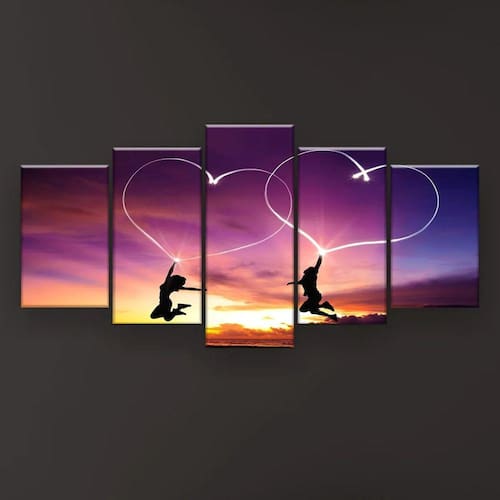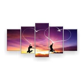 Quadro Decorativo Coração Céu Roxo 5pc 129x61 Sala Quarto