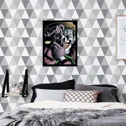 Quadro Decorativo Coringa com Câmera 34x23cm - Moldura Branca Tamanho: A4 20 x 30 Acabamento: Película de acetato Moldura: Madeira Branca INFORMAÇÕES DO PRODUTO TIRE TODAS AS SUAS DÚVIDAS NO DESCRITIVO ABAIXO: Decoração para quarto, sala, cozinha, escritório, área gourmet e muito mais. Chega de paredes vazias! MEDIDAS - Cada Peça tem 34x23cm A4 . MATERIAL DO PAPEL - Papel fotográfico brilhante de altíssima resolução ACABAMENTO - Todos os quadros são acompanhados de uma película de acetato para proteção da imagem. - Moldura em madeira maciça na cor branca e pendurador móvel que pode ser retirado facilmente caso deseje fixar com fita dupla face. - Os quadros são embalados de forma segura com plástico bolha com camada dupla de acordo com o tamanho dos quadros. - de 3 meses . MEU QUADRO CHEGOU. COMO POSSO FIXÁ-LO? Você precisa apenas de um martelo e um prego, pois os quadros já vão acompanhados de penduradores. Esta é a forma mais indicada. Caso prefira, você pode utilizar uma fita dupla face neste caso, sugerimos de alta qualidade para evitar que descole e seu quadro caia . COMO POSSO LIMPAR MEU QUADRO? A limpeza é feita como um móvel comum da sua casa. Apenas um pano seco ou espanador são suficientes para tal