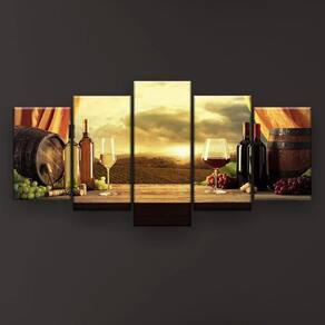 Quadro Decorativo Cortina Vinho Uvas 5pc 129x61 Sala