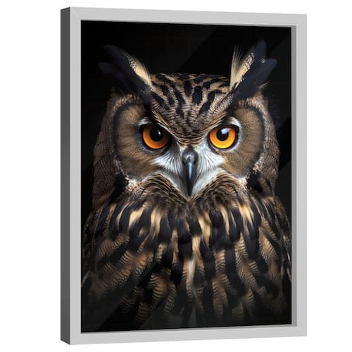 Quadro Decorativo Coruja No Preto Quadro Decorativo Coruja no Preto Moldura Branca e Vidro - 180x105cm - - Qualidade Premium (padrão museu)