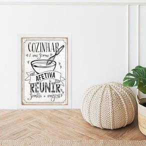 Quadro decorativo cozinha afetiva 45x34cm Moldura: madeira branca Informações do produto tire todas as suas dúvidas no descritivo abaixo: decoração para quarto, sala, cozinha, escritório, área gourmet e muito mais. Chega de paredes vazias. Medidas - cada peça tem 45x34cm a3 . Material do papel - papel fotográfico brilhante de altíssima resolução acabamento - todos os quadros são acompanhados de uma película de acetato para proteção da imagem. - os quadros são embalados de forma segura com plástico bolha com camada dupla de acordo com o tamanho dos quadros. Garantia - garantia de 3 meses. Meu quadro chegou. Como posso fixá-lo Você precisa apenas de um martelo e um prego, pois os quadros já vão acompanhados de penduradores. Esta é a forma mais indicada. Caso prefira, você pode utilizar uma fita dupla face neste caso, sugerimos de alta qualidade para evitar que descole e seu quadro caia . Como posso limpar meu quadro A limpeza é feita como um móvel comum da sua casa. Apenas um pano seco ou espanador são suficientes para tal