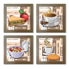 Quadro Decorativo Cozinha Café Manhã Padaria 20x20cm Kit 4 un