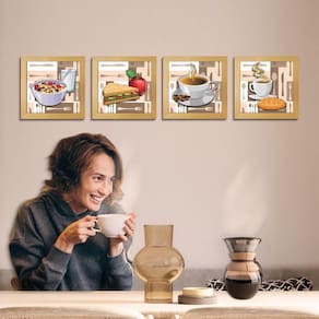 Quadro Decorativo Cozinha Café Manhã Padaria 20x20cm Kit 4 un