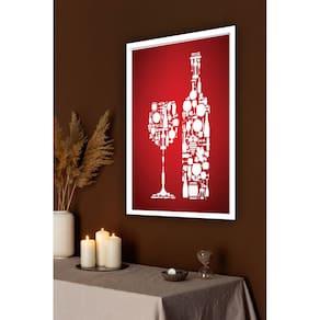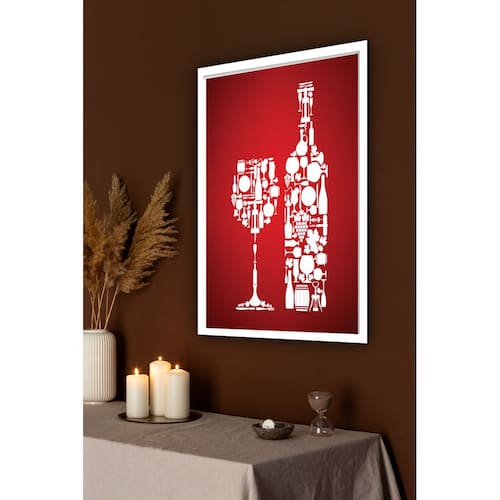 Quadro Decorativo Cozinha Kitchen Love Vinho - 70x50cm - Cor: Moldura Branca