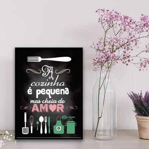 Quadro decorativo cozinha pequena 24x18cm Moldura: madeira preta Informações do produto Decoração para quarto, sala, cozinha, escritório, área gourmet e muito mais. Chega de paredes vazias Medidas - cada peça tem 24x18cm a5 . Material do papel - papel fotográfico brilhante de altíssima resolução Acabamento - todos os quadros são acompanhados de uma película de acetato para proteção da imagem. - os quadros são embalados de forma segura com plástico bolha com camada dupla de acordo com o tamanho dos quadros. - de 3 meses. Meu quadro chegou. Como posso fixá-lo Você precisa apenas de um martelo e um prego, pois os quadros já vão acompanhados de penduradores. Esta é a forma mais indicada. Caso prefira, você pode utilizar uma fita dupla face neste caso, sugerimos de alta qualidade para evitar que descole e seu quadro caia . Como posso limpar meu quadro A limpeza é feita como um móvel comum da sua casa. Apenas um pano seco ou espanador são suficientes para tal