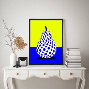 Quadro decorativo cozinha pera pop arte 45x34cm - com vidro Cor: moldura branca Informações do produto tire todas as suas dúvidas no descritivo abaixo: decoração para quarto, sala, cozinha, escritório, área gourmet e muito mais. Chega de paredes vazias medidas - cada peça tem 45x34cm a3 . Material do papel - papel fotográfico brilhante de altíssima resolução acabamento - todos os quadros são acompanhados de vidro para proteção da imagem. - moldura em madeira maciça na cor preta ou branca conforme produto escolhido e pendurador . - os quadros são embalados de forma segura com plástico bolha com camada dupla de acordo com o tamanho dos quadros. - de 3 meses. Meu quadro chegou. Como posso fixá-lo Você precisa apenas de um martelo e um prego, pois os quadros já vão acompanhados de penduradores. Esta é a forma mais indicada. Como posso limpar meu quadro A limpeza é feita como um móvel comum da sua casa. Apenas um pano seco ou espanador são suficientes para tal