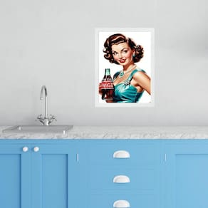 Quadro decorativo cozinha pin up refrigerante 33x24cm Cor: moldura branca Informações do produto tire todas as suas dúvidas no descritivo abaixo: decoração para quarto, sala, cozinha, escritório, área gourmet e muito mais. Chega de paredes vazias medidas - cada peça tem 33x24cm a4 . Material do papel - papel fotográfico brilhante de altíssima resolução acabamento - todos os quadros são acompanhados de uma película de acetato para proteção da imagem. - os quadros são embalados de forma segura com plástico bolha com camada dupla de acordo com o tamanho dos quadros. - de 3 meses. Meu quadro chegou. Como posso fixá-lo Você precisa apenas de um martelo e um prego, pois os quadros já vão acompanhados de penduradores. Esta é a forma mais indicada. Caso prefira, você pode utilizar uma fita dupla face neste caso, sugerimos de alta qualidade para evitar que descole e seu quadro caia . Como posso limpar meu quadro A limpeza é feita como um móvel comum da sua casa. Apenas um pano seco ou espanador são suficientes para tal
