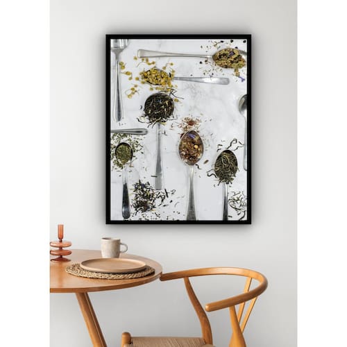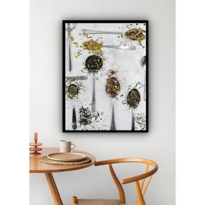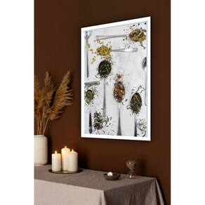 Quadro Decorativo Cozinha Temperos Colheres - 70x50cm - Cor: Moldura Branca