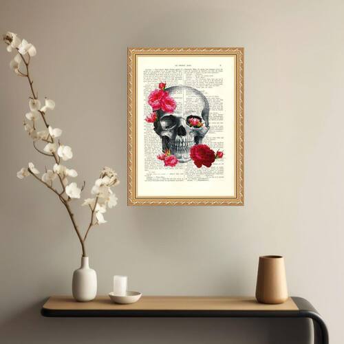 Quadro decorativo crânio com rosas 24x18cm - com vidro Cor: moldura preta Informações do produto tire todas as suas dúvidas no descritivo abaixo: decoração para quarto, sala, cozinha, escritório, área gourmet e muito mais. Chega de paredes vazias medidas - cada peça tem 24x18cm a5 . Material do papel - papel fotográfico brilhante de altíssima resolução acabamento - todos os quadros são acompanhados de vidro para proteção da imagem. - moldura em madeira maciça na cor preta ou branca conforme produto escolhido e pendurador . - os quadros são embalados de forma segura com plástico bolha com camada dupla de acordo com o tamanho dos quadros. Garantia - garantia de 3 meses. Meu quadro chegou. Como posso fixá-lo Você precisa apenas de um martelo e um prego, pois os quadros já vão acompanhados de penduradores. Esta é a forma mais indicada. Como posso limpar meu quadro A limpeza é feita como um móvel comum da sua casa. Apenas um pano seco ou espanador são suficientes para tal